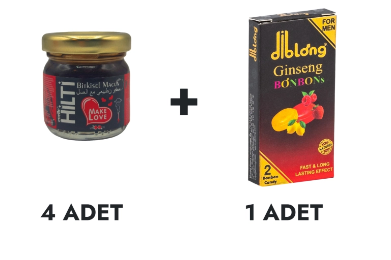 Hilti Macun Küçük 4 Adet ve Diblong Ginseng Bonbons, ginseng özü içeren, Performansı destekleyici atıştırmalıklardır. Hilti Macun Küçük 50 gramlık tasarım kavanozda ve Diblong Bonbon tasarım kutusunda 2 adet bonbon olacak şekilde satışa sunulmaktadır. Hilti Macun Küçük 4 Adet ve Diblong Ginseng Bonbons'un içeriğinde ginkgo biloba ve ginseng gibi bileşenler bulunmaktadır. Bu içerikler, İsteği ve Performansı desteklemeye yardımcı olur.